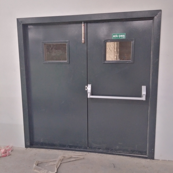 90*210, 95*210 , 100*210 cm standart ölçüler yanında müşteri beklentilerine uygun ölçülerde, 1.2mm kapı kanadı kalınlığı, 1.5mm kasa kalınlığı, tüm ral kataloğu renklerinde elektrostatik fırınlı toz boya, ısıya duyarlı şişen fitil, toz, rüzgar ve duman sızdırmaz soğuk fitil, 2 yıl garantili panik bar kilidi ve istek dahilinde dış kilit, dış kol veya gömme kilit seçenekleri ve 2 yıl garantili yaylı menteşe sistemi ile yangın kapı imalatımız mevuttur.
