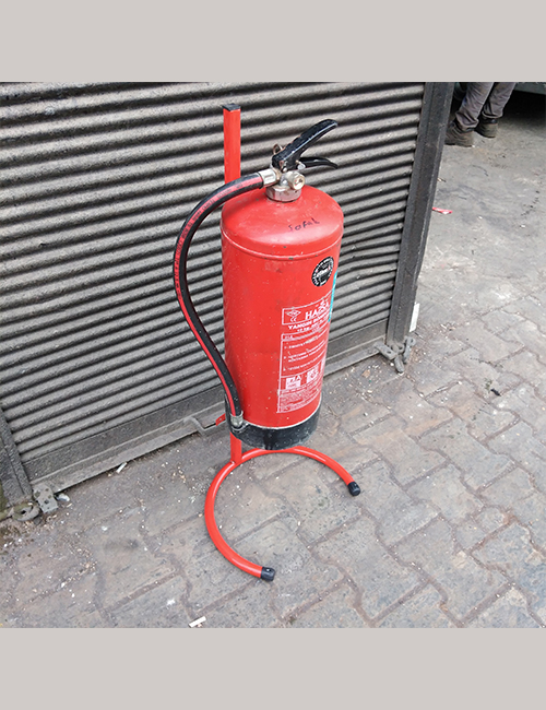 Fabrika, iş yeri, küçük işletmeler dahil olmak üzere yangın tüplerinin yaygınlaşması sonucunda, fazla yer kaplamadan ve olası bir durumda kullanımı kolaylaştıracak yangın tüpü askısı.